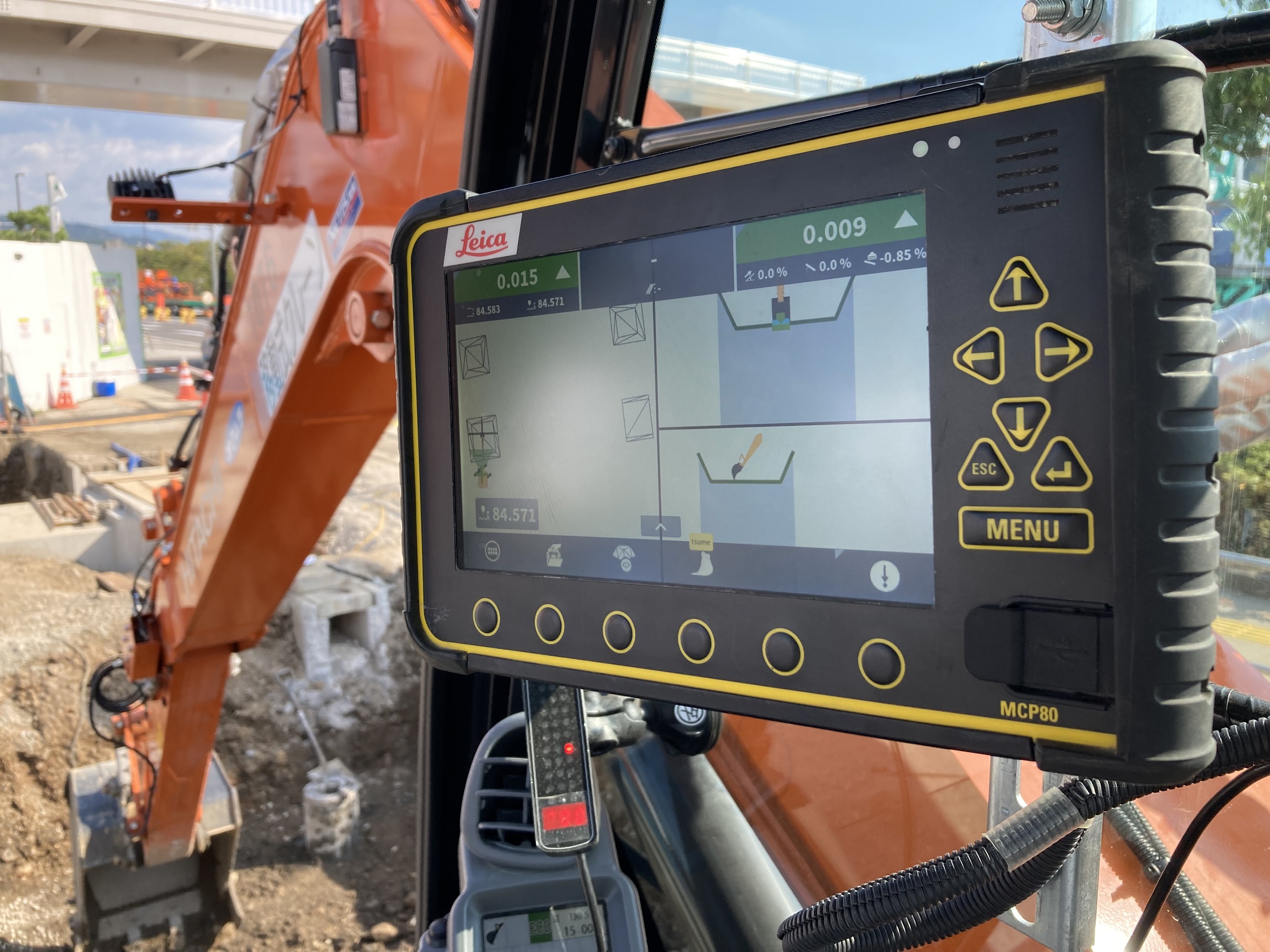 ↓モニターには、事前に作成し、機械に取り込んだ工事現場の情報が映し出されています。