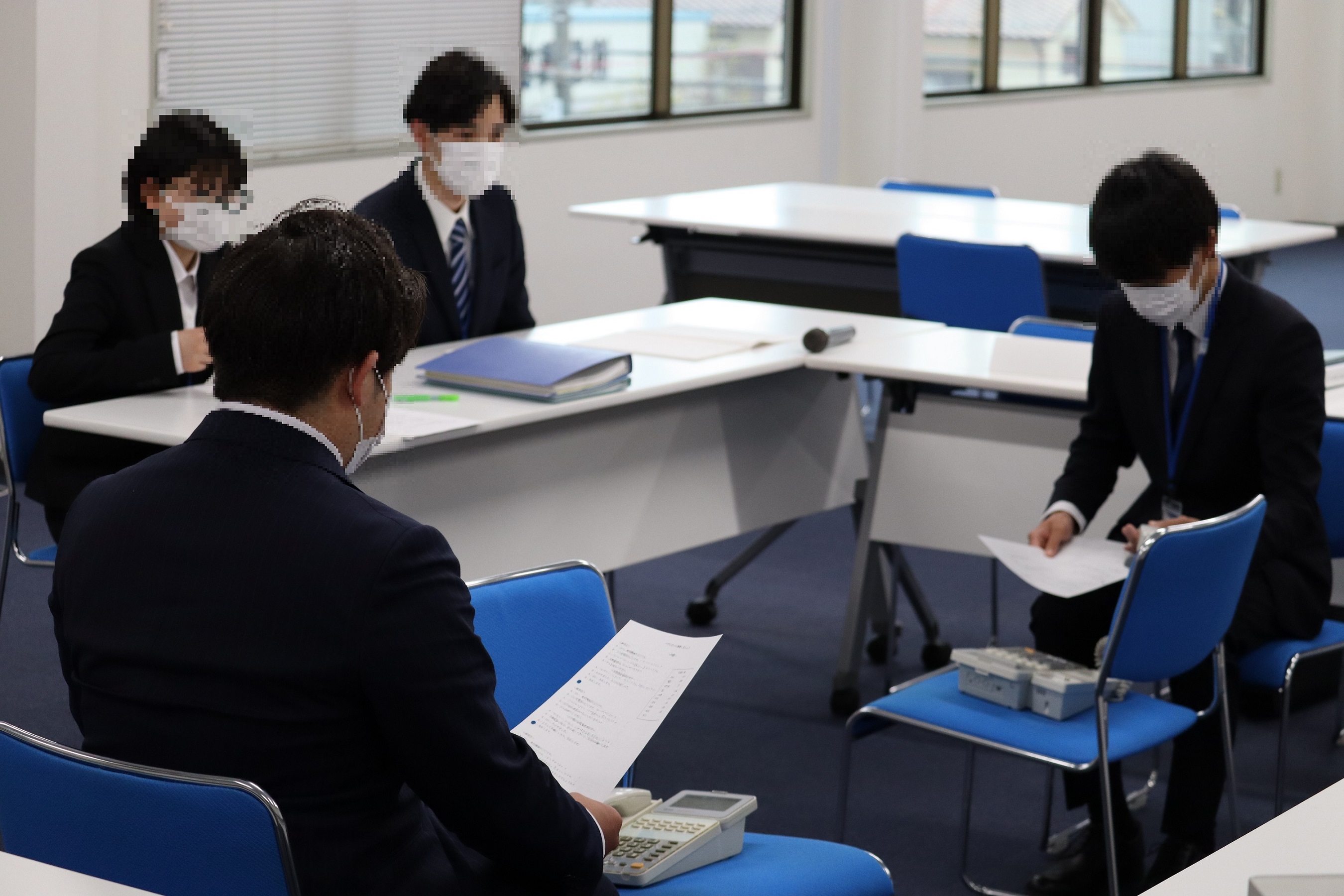 本番を前に、ペアになって電話応対の練習です。