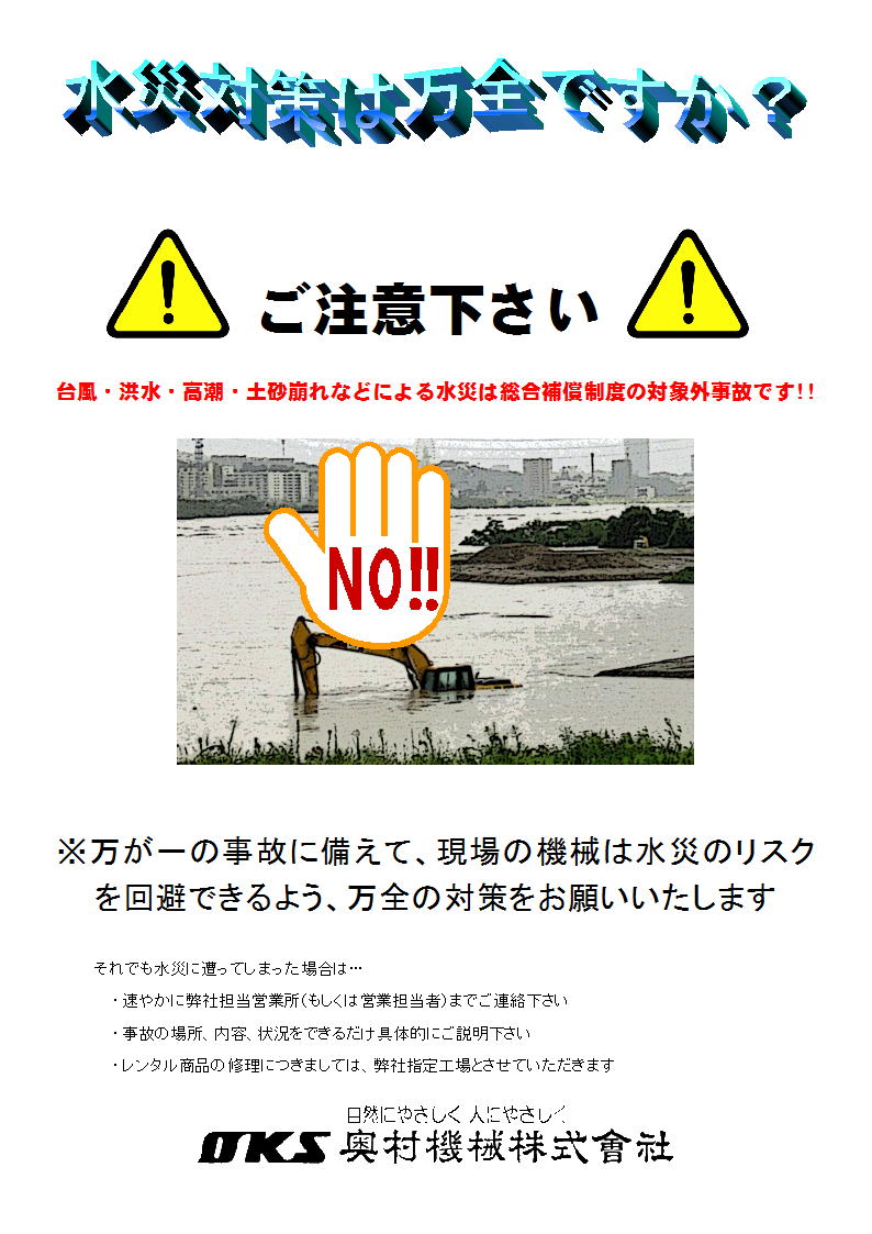 台風10号の大きな特徴は動きが遅いということです。そのために大雨や暴風の時間が長く続いてしまいそうです。また、予想にはブレがあるものの、広範囲に影響が起こりそうです。早めの台風対策をお願いいたします。レンタル機に限らず、お客様の大切な機械への避難対策や、現場、事務所や置場の飛散防止対策、高所足場の安全の確保をしましょう!
