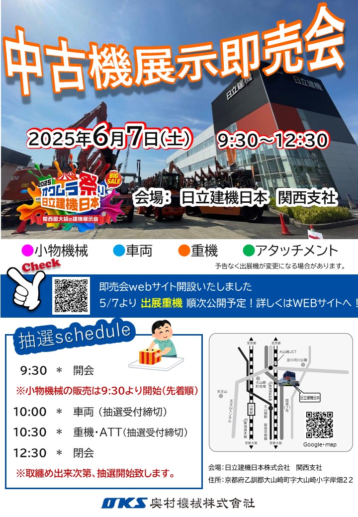 日立建機日本 関西支社で中古機展示即売会が開催されます!