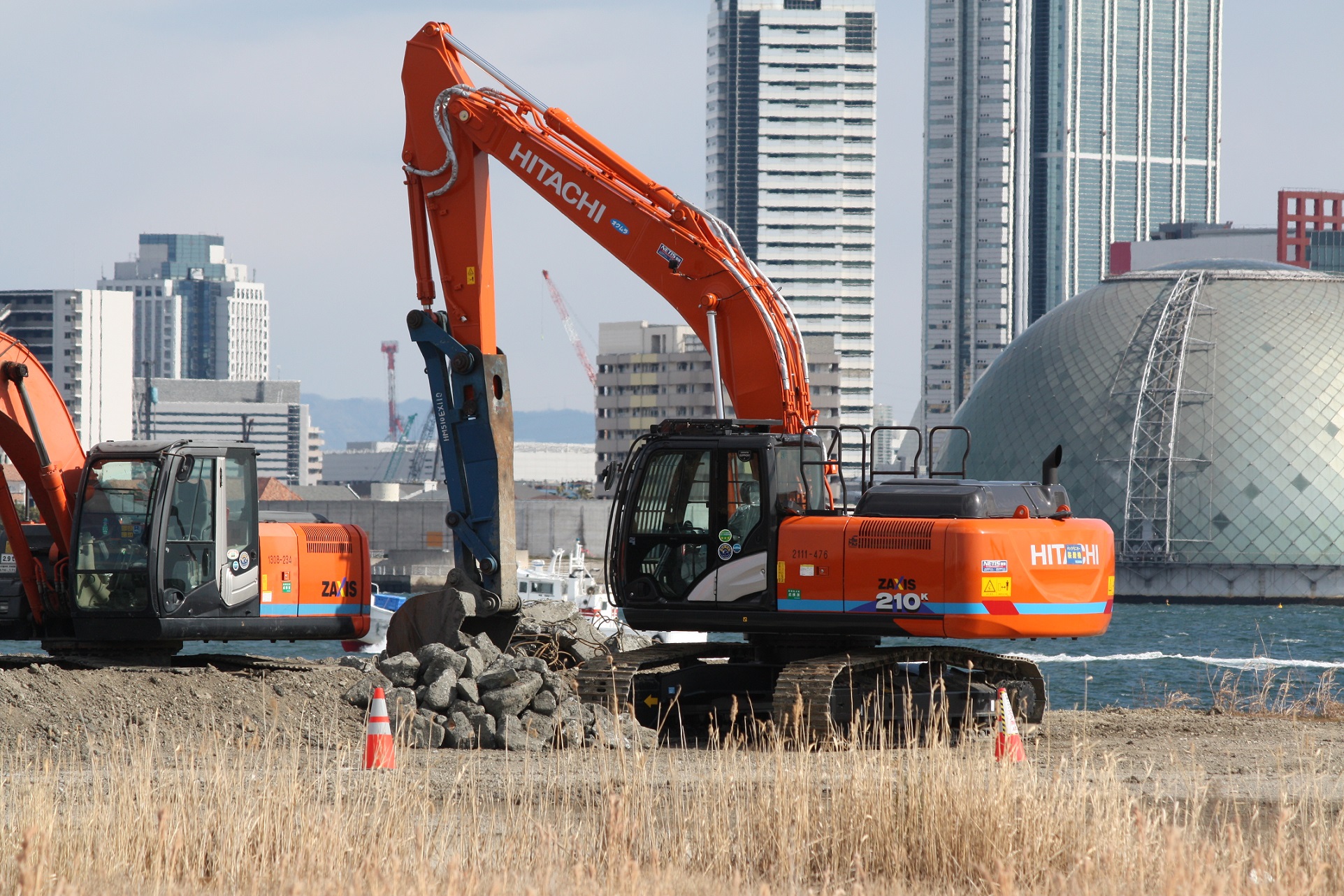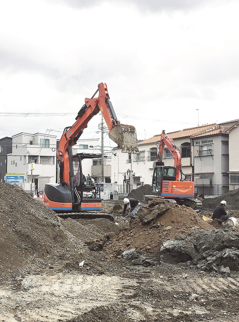 尼崎営業所では、建物の解体や建物を建てるための土台作りを行う造成工事、ライフラインである水道工事、公共の河川工事などでお客様に機械を使用いただいています。工事現場の規模がまちまちなので、大型の重機から小型のミニショベルまで様々な商品が活躍しています!最近では、大学の校舎の新築工事や自動車メーカーの工場内工事で当社の機械が活躍しました!他にも、甲子園球場の整備で活躍したり、河川が多い地域でもあるので、河川の公共工事でも機械が活躍しています!
