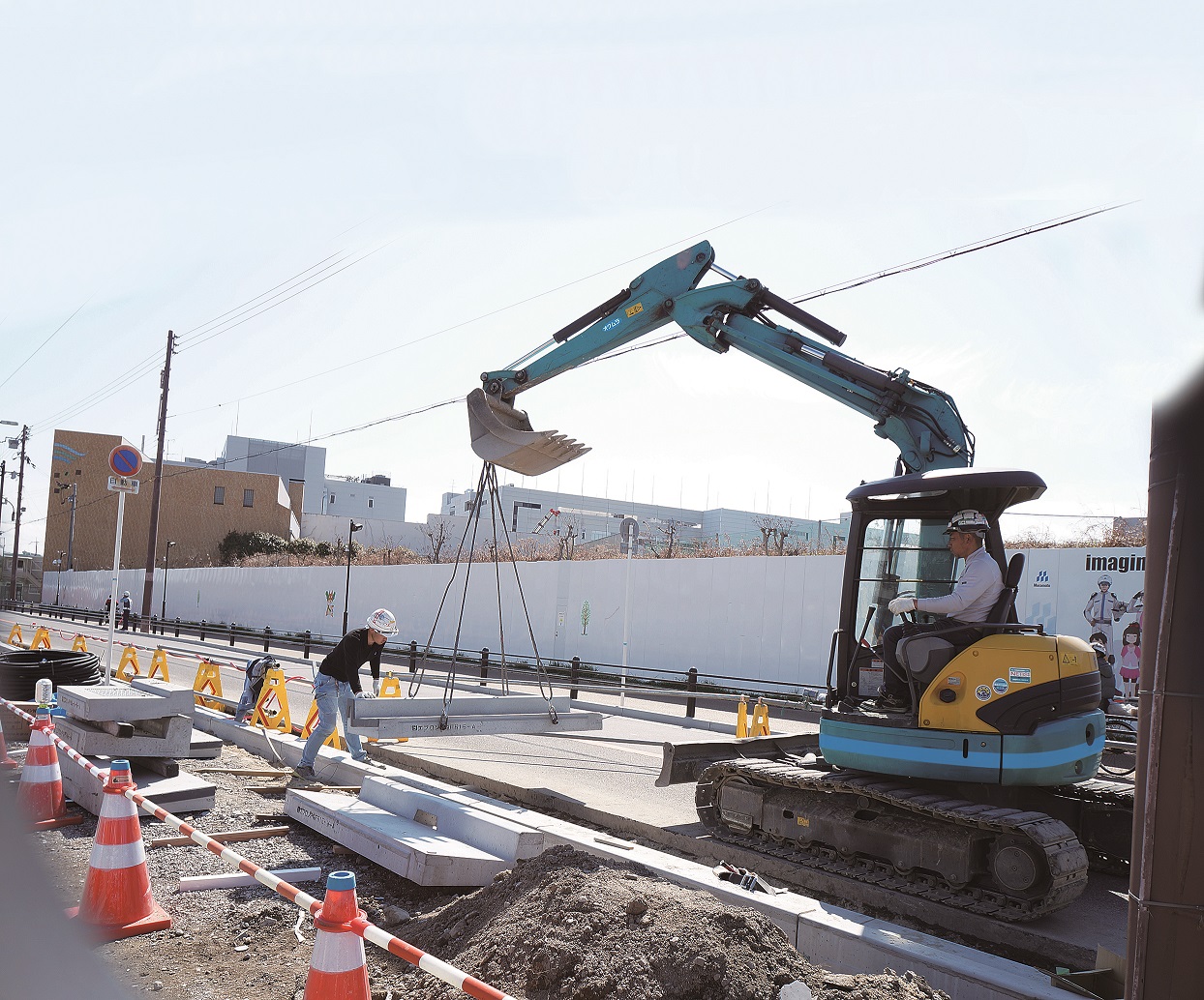 このような大きな現場で機械を使用いただくこともありますが、他にも街の様々な工事現場でオクムラの機械たちは活躍しています!