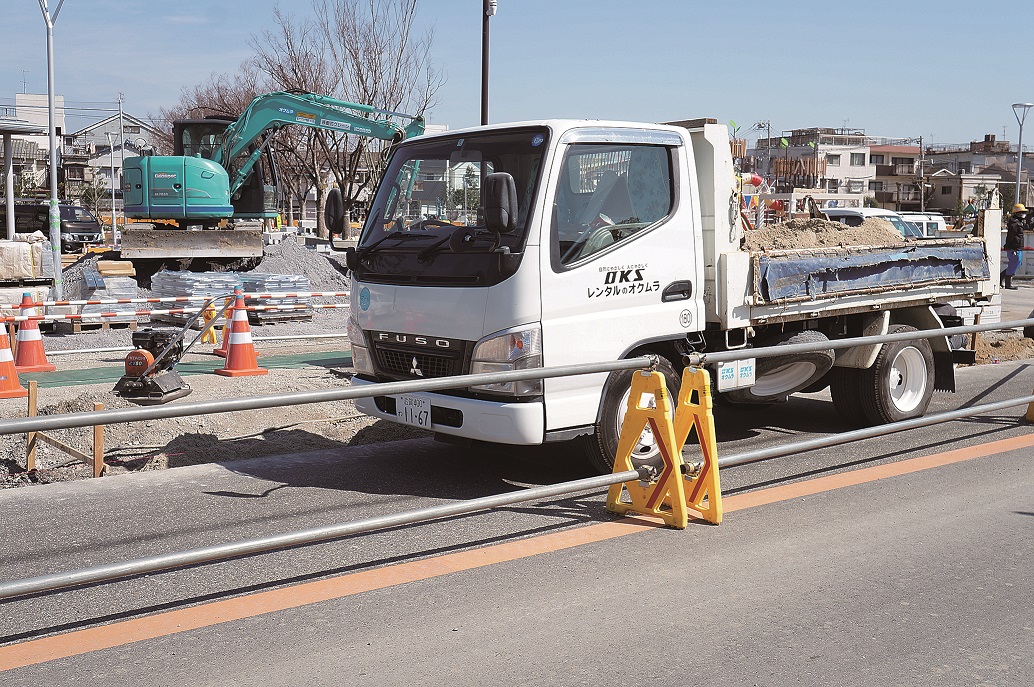 営業所に来られるお客様の多くは、建物の解体工事を行われる解体業や、道路の整備工事を行う舗装業、宅地の造成工事を行われる土木業に関わる方々です。様々なお客様が当社の機械を借りに来られますが、主力商品である油圧ショベルやダンプカー、道路工事で使用するフィニッシャーやローラー(舗装機械)の注文をいただくことが多いです。夜間の工事なども多いため、現場を照らすための投光器もお貸しします。橿原営業所では、京奈和自動車道の工事にも多くの機械を貸出していました!