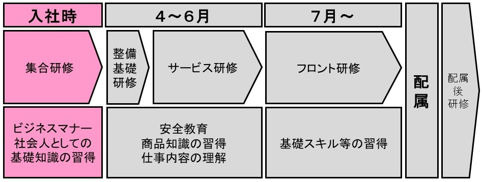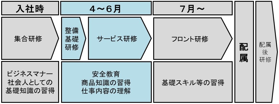 強固な地盤を作るためにも、しっかりとした研修のスケジュールを準備しています。