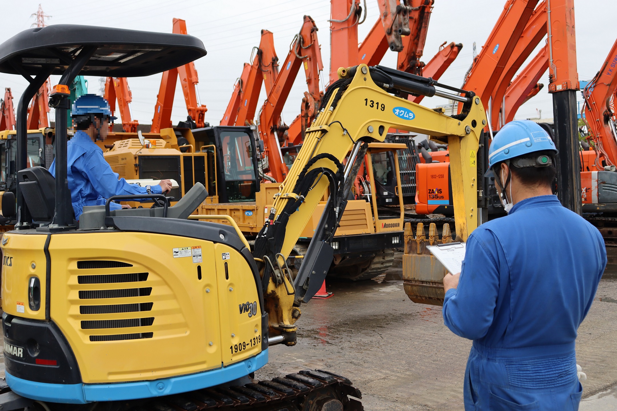 安全教育の一貫で小さな油圧ショベルであれば動かせる資格を取得いただくためのテストを行います。