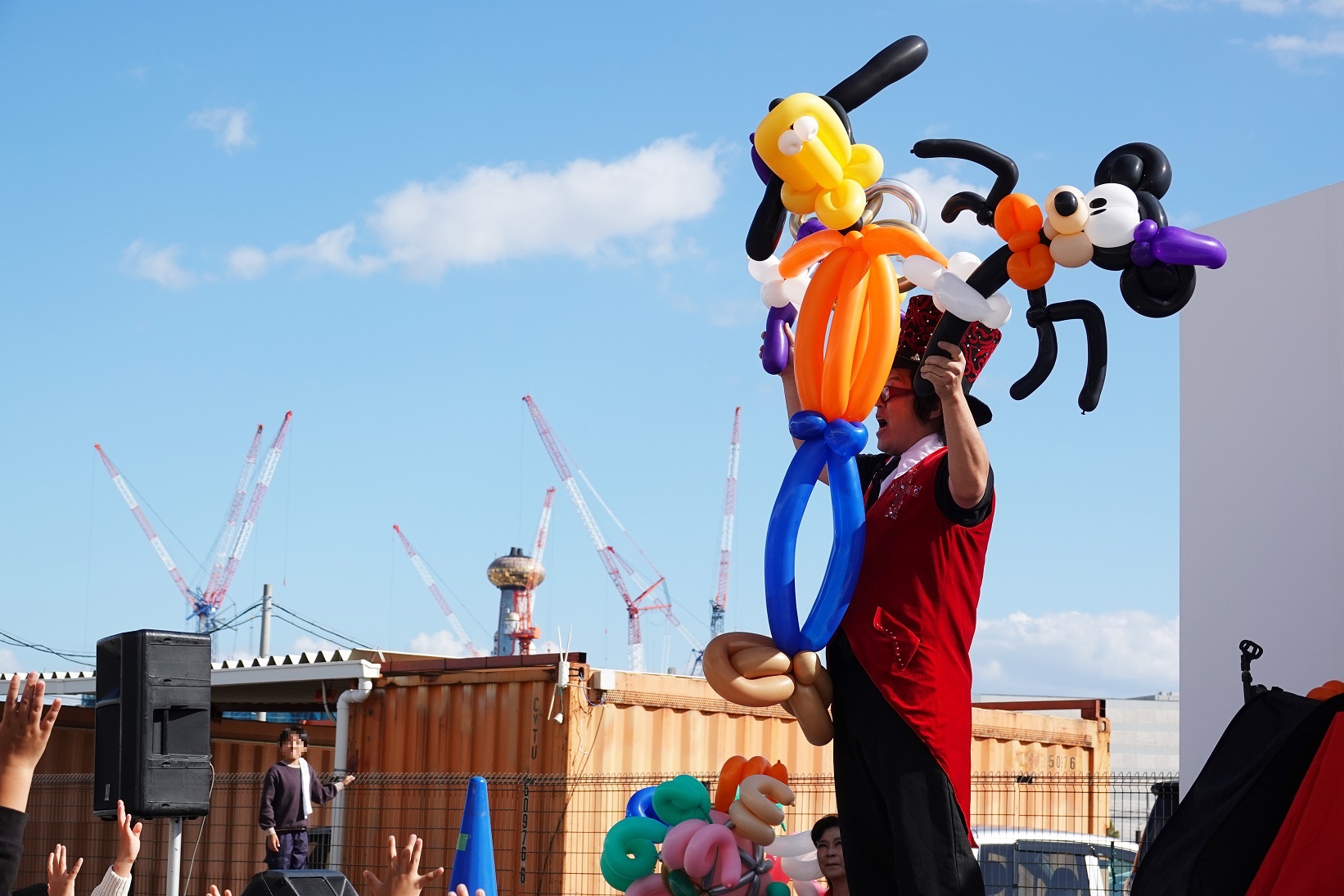 無料の飲食ブースに加え、イベントステージ上では、バルーンアートショー、今年で引退となる双腕重機アスタコショーなど、様々なイベントで会場が盛り上がりました!
