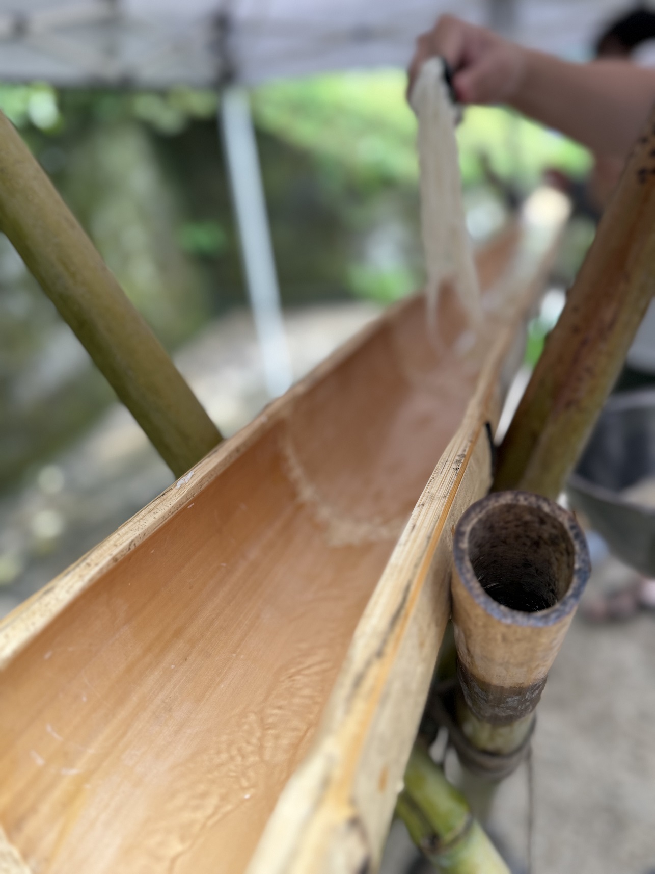翌日は、流しそうめんで朝食!朝でもそうめんであればスルスル入っていきました!