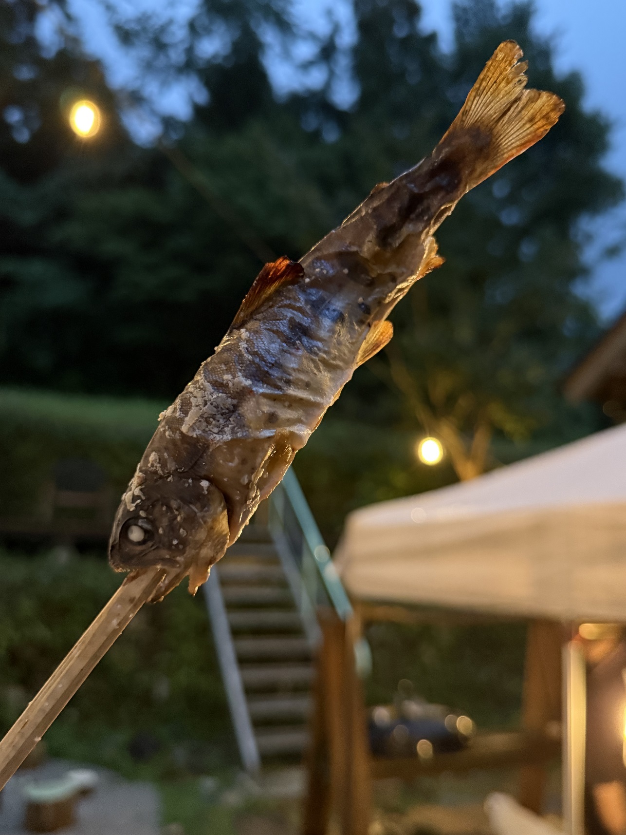 一棟貸しのコテージにはなりますが、昼は近くの施設でアマゴのつかみ取り体験・晩はコテージ横でのBBQと自然を感じながら楽しみました!