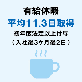 | 勤務時間 | 8:30~17:30 総合職・専門職はシフト制にて7:30~早出あり |