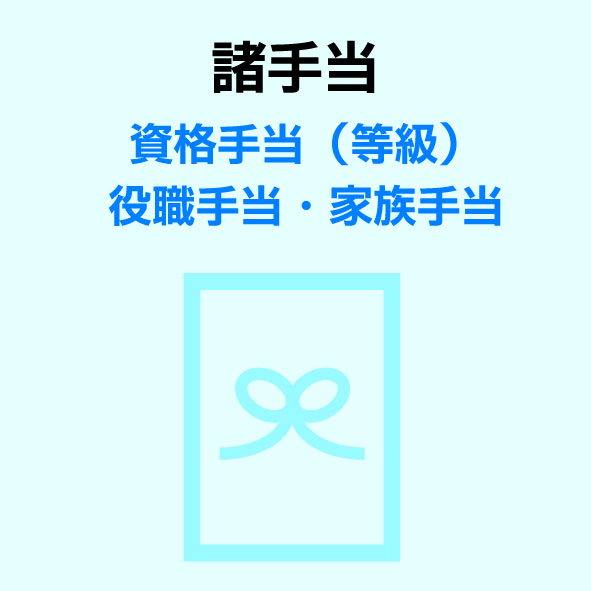 | 諸手当 | 役職手当・家族手当・資格手当・通勤手当 |